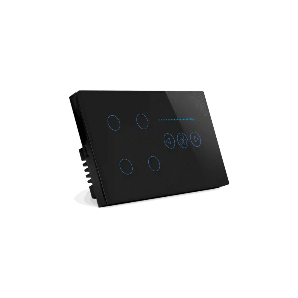 This smart panel features 4 independent switches for lights and 1 dedicated fan controller, allowing adjustable fan speed via touch, mobile app, or voice command. Perfect for modern homes, bedrooms, and living rooms where both lighting and airflow matter.